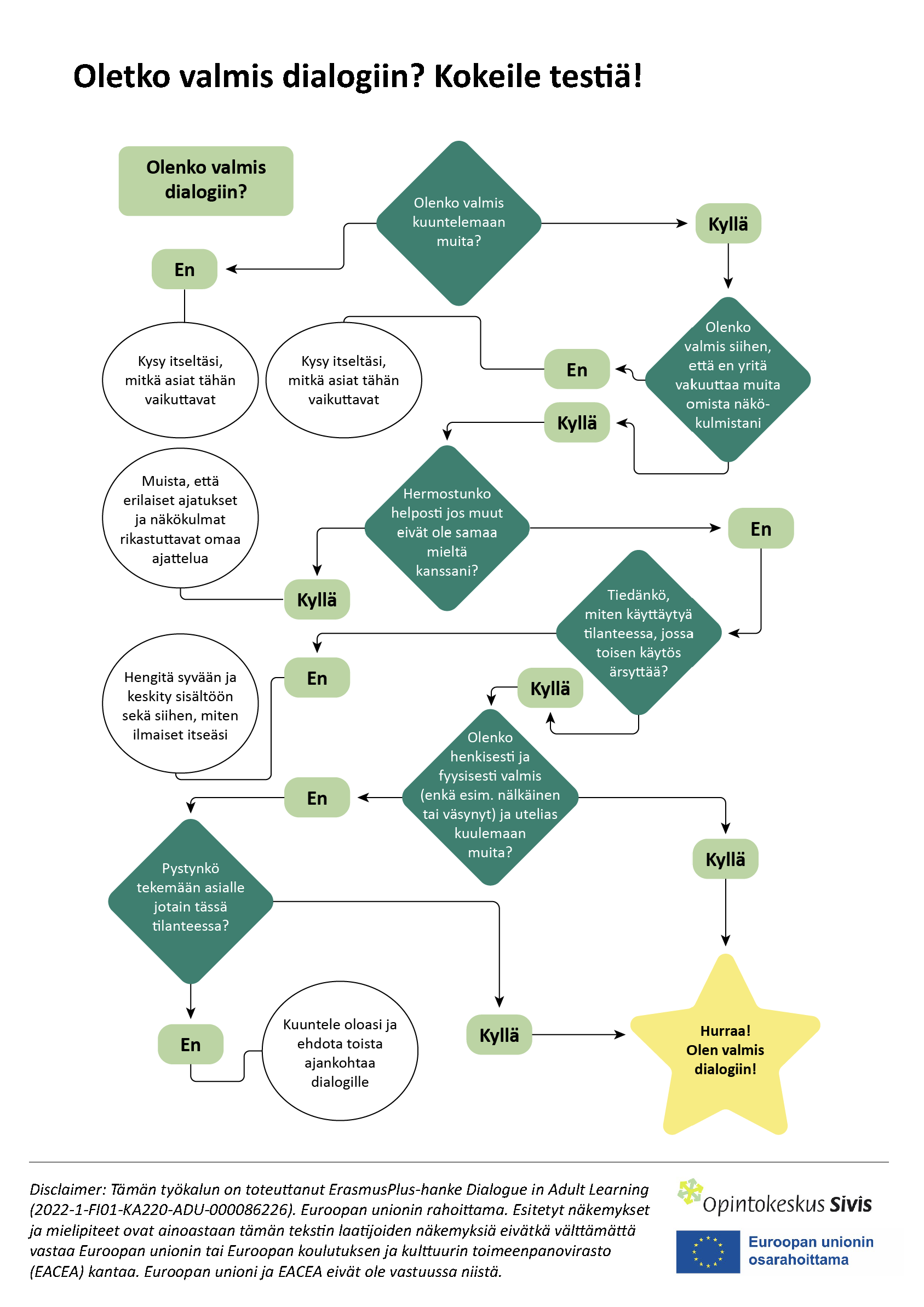 Oppaan sisältämä Oletko valmis dialogiin? -vuokaavio on saatavilla myös erillisenä tiedostona.